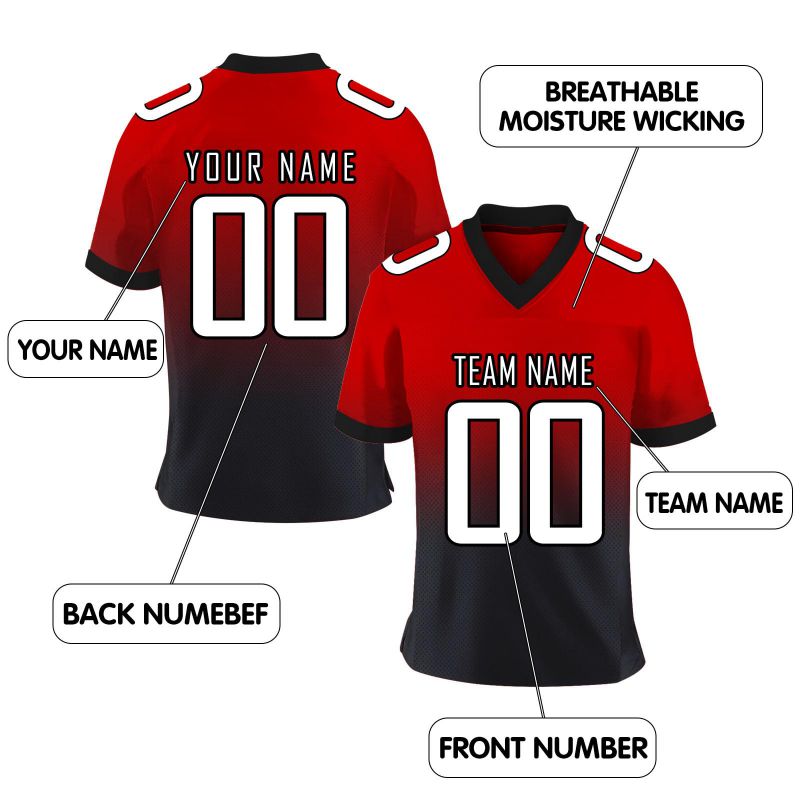 Customize football jerseys with any team name number. and Logos. Customized team shirts are an excellent apparel idea for schools. colleges. universities. and companies to prepare their own sportswear for football.